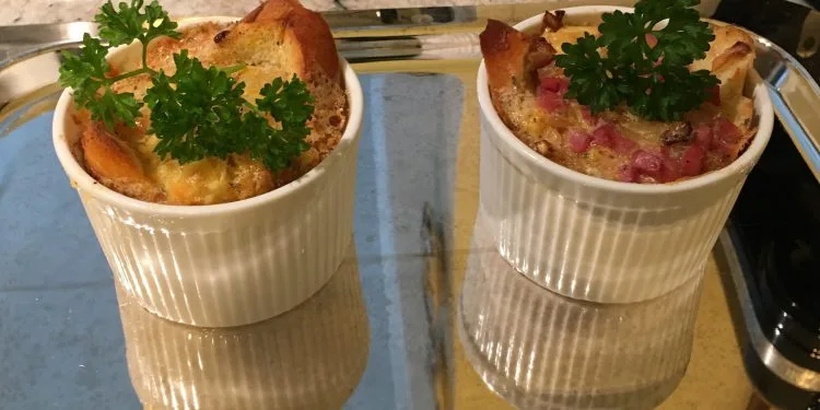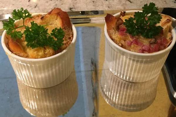 Main dish examples – Grits casserole, praline pecan French toast, Sweet Lokshen kugel, Belgian waffles, vegetarian omelette, spinach quiche, egg soufflé, feather bed eggs, Swedish pancakes, stuffed Dutch baby pancake, and more.